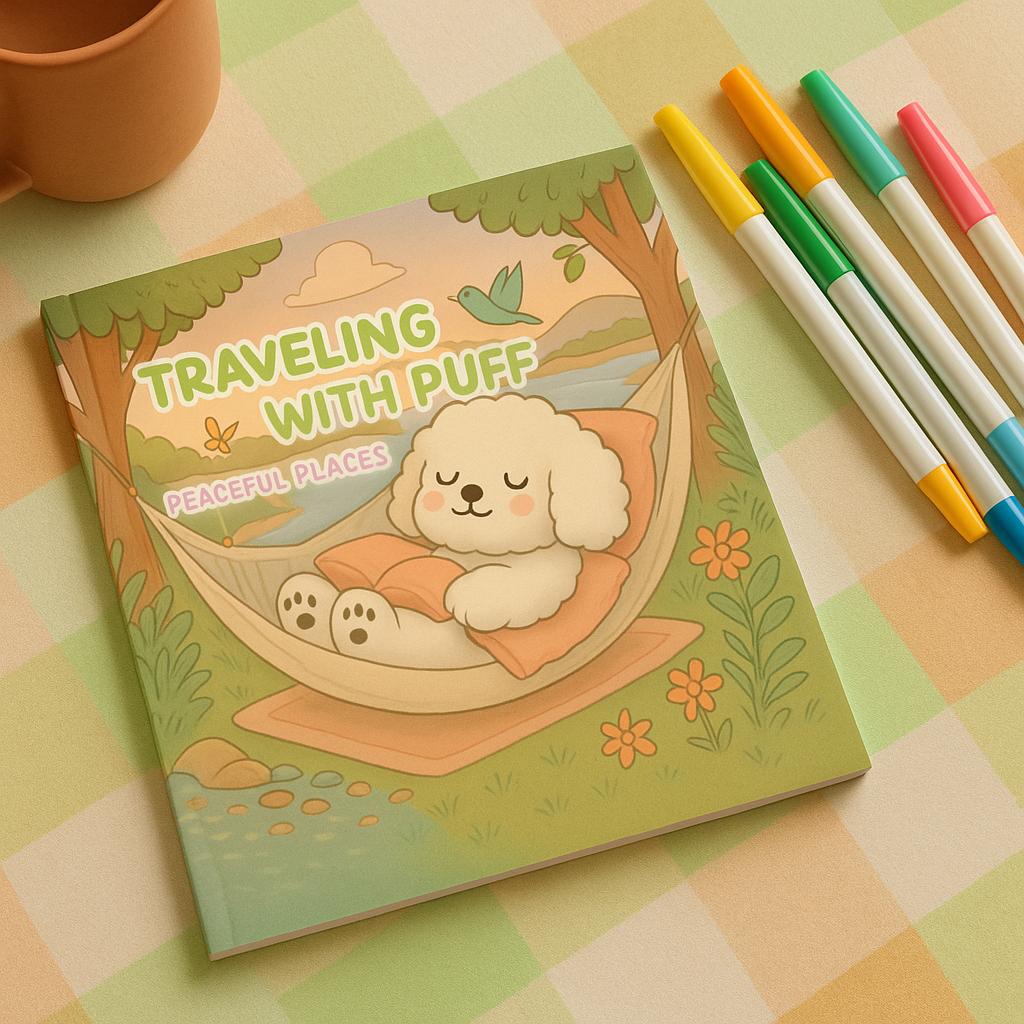 ✨ Discover Traveling with Puff: Peaceful Places — a mindful coloring journey where kids explore cozy adventures and find calm through creativity.